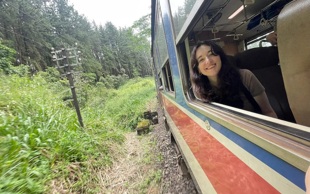 The fun is in moving between them. Sharp metal plates slide across one another, baying to take a toe from unsuspecting passengers. And exterior doors are sometimes left open, too. Not, perhaps, the safest choice, but one that does allow, tentatively, an even more impressive view of the Sri Lankan countryside.