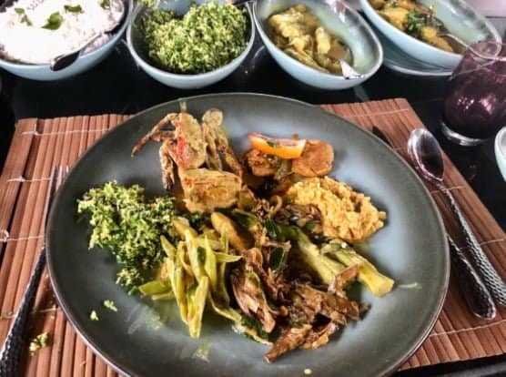 With the help of Disna we’ve soon whipped up a feast, which we eat in the traditional Sri Lankan way – served on a large leaf and eaten with our hands. No unnecessary washing here.